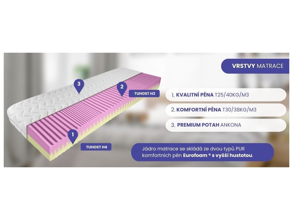 Kvalitní pěna T25/40kg/m3 s 7 zónami