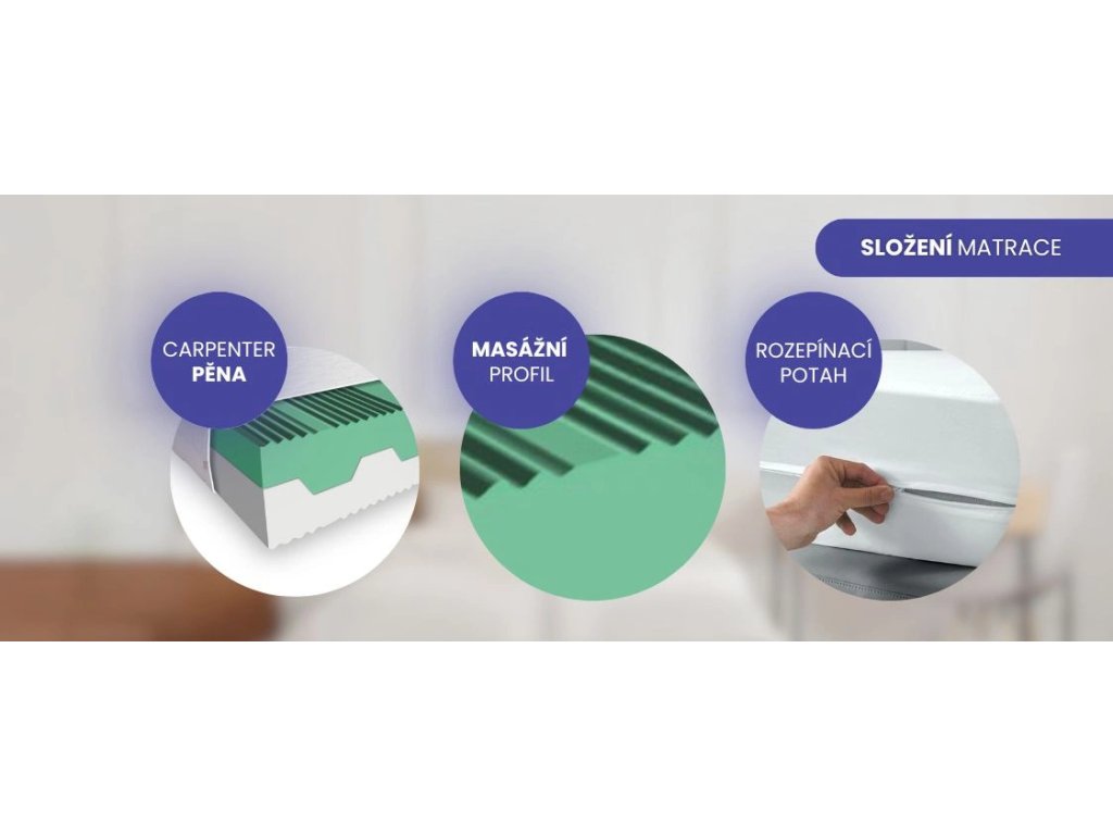 Masážní profil matrace má 7 zón, které se dokonale přizpůsobí konturám vašeho těla a poskytují vynikající podporu pro ramenní, bederní a pánevní oblast. Tato matrace je také vhodná pro alergiky a astmatiky, a to díky kvalitním a hypoalergenním materiálům použitým při její výrobě.