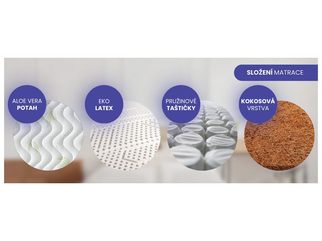 Eko latexová vrstva představuje významný prvek v konstrukci matrace. Tato latexová pěna je vysoce vhodná pro výrobu matrací díky svým vlastnostem: vysoké elasticitě, dlouhé životnosti jádra a směsi z 80% syntetického a 20% přírodního kaučuku.