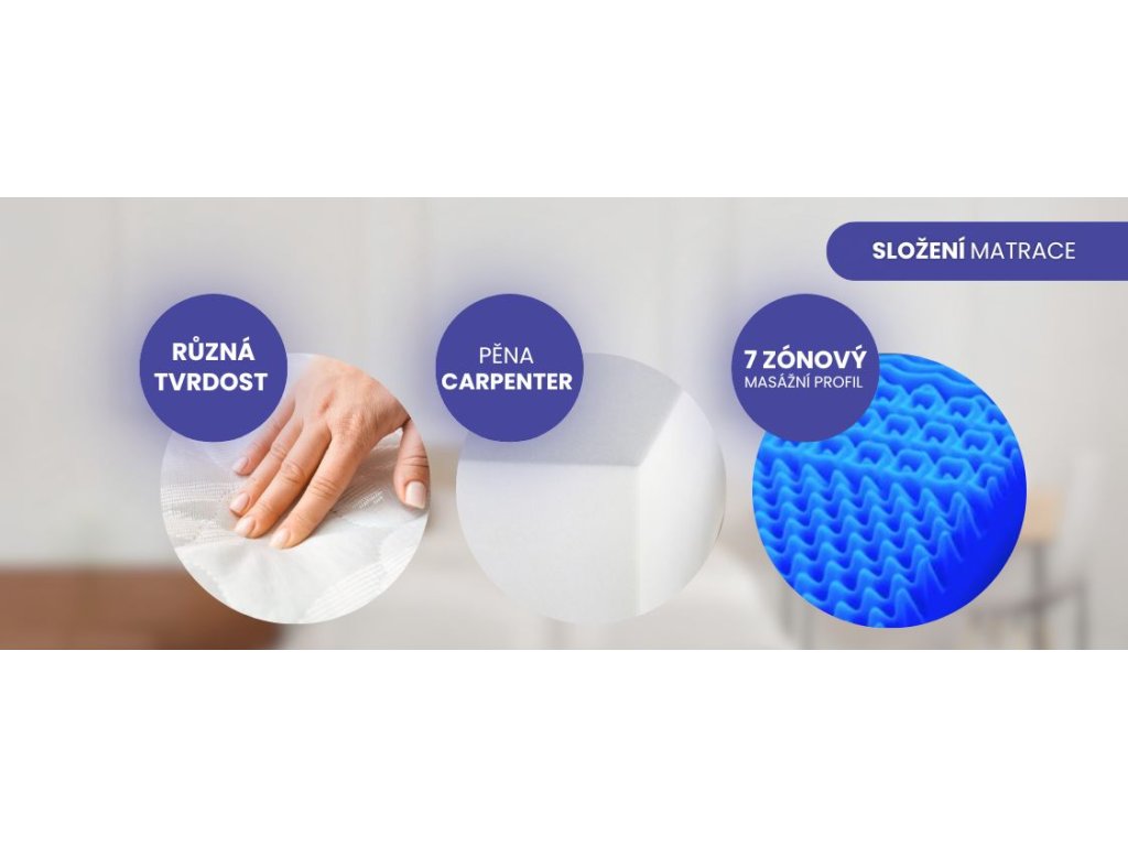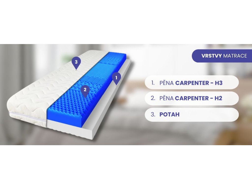 Pěna Carpenter s tvrdostí H3 a 7 zónovým masážním profilem