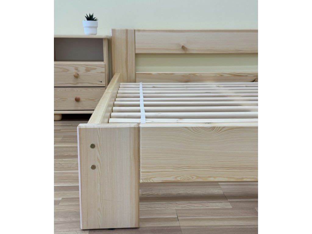 Tato pevná a stabilní postel je vyrobena z masivního borovicového dřeva o síle 40 mm, což jí dodává výjimečnou odolnost a dlouhou životnost. Povrch je ošetřen dvěma vrstvami ekologického bezbarvého laku, který nejen chrání proti opotřebení, ale zároveň zvýrazňuje přirozenou krásu dřeva.