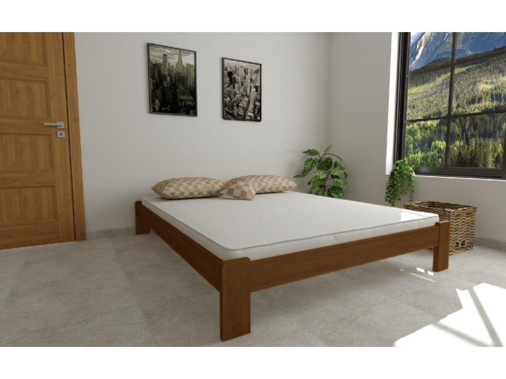 Tato pevná a stabilní postel je vyrobena z masivního borovicového dřeva o síle 25–28 mm, což jí dodává výjimečnou odolnost a dlouhou životnost. Povrch je ošetřen dvěma vrstvami ekologického bezbarvého laku, který nejen chrání proti opotřebení, ale zároveň zvýrazňuje přirozenou krásu dřeva.