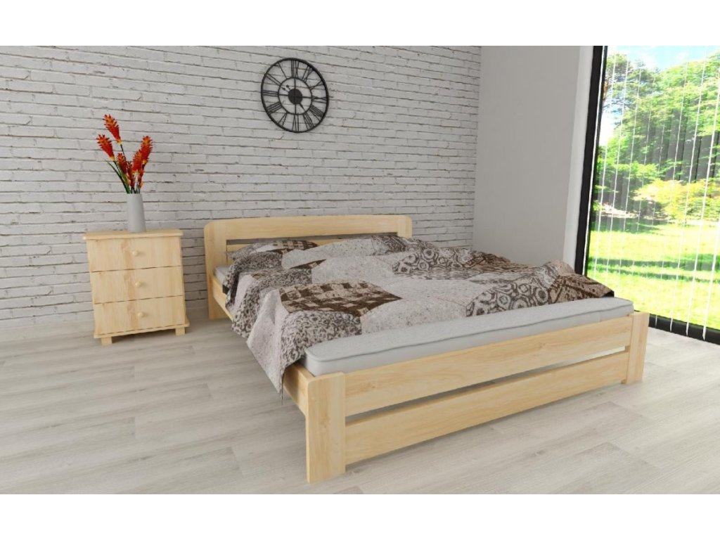 Součástí postele je laťový rošt, který zajišťuje optimální podporu těla a maximální komfort během spánku. Tato pevná a stabilní postel je vyrobena z masivního borovicového dřeva o síle 25–28 mm, což jí dodává výjimečnou odolnost a dlouhou životnost. Povrch je ošetřen dvěma vrstvami ekologického bezbarvého laku, který nejen chrání proti opotřebení, ale zároveň zvýrazňuje přirozenou krásu dřeva. Pro milovníky barevných variant nabízíme odstíny olše, dubu a ořechu, které jsou nejprve mořeny a následně dvakrát lakovány průhledným lakem. Díky tomu získávají jedinečný a elegantní vzhled.